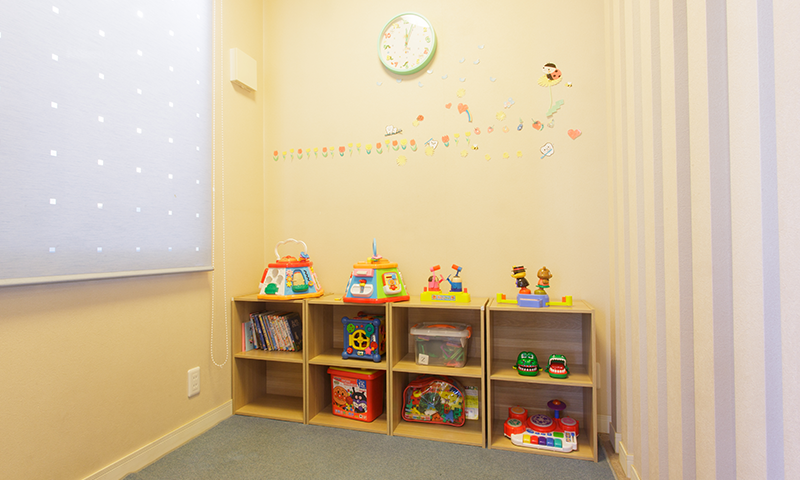 待合室からお子さんの様子が確認できる位置にあるため、親御さんも安心して自分の順番を待つことができます。